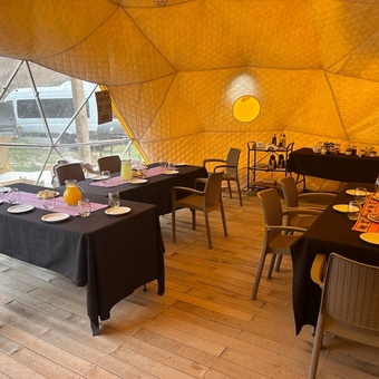 - Большая палатка – столовая и кают-компания в Базовом лагере: столы, стулья, свет