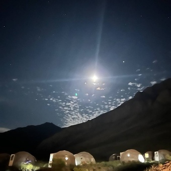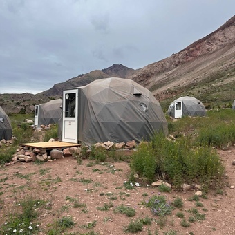- Проживание на Пласа де Мулас (4300 м) в двухместных домо-палатках с кроватями;