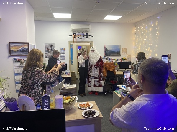 17 декабря работники Клуба 7 Вершин приняли у себя Деда Мороза. Выражаем от нашего коллектива благодарность гостю, который провёл сеанс на хорошем профессиональном уровне! То, чего ждали, мы и получили. Нам приятно ощущать нашу компанию настоящей дружной семьей, радоваться всем вместе праздникам и просто встречам. Получили от дедушки шампанское и икру. Но этого мало. Мы еще дали Деду Морозу наказ. Мы ждём от нового года мира, открытых границ и аэропортов, чтобы все люди стали добрее и человечнее. Путешествуйте с нами, совершайте смелые восхождения, цените красоту природы и товарищей по походам!