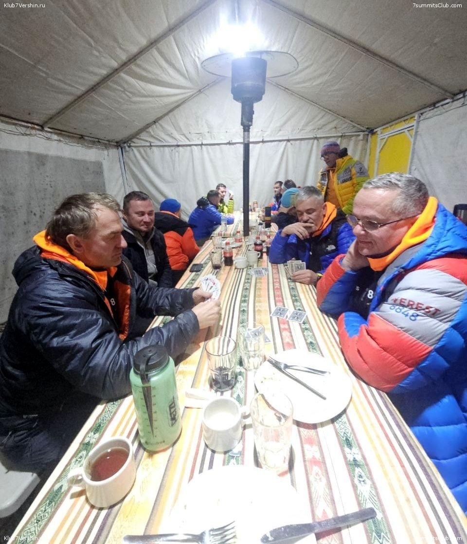 Привет из Мексики! Группа Клуба 7 Вершин "Los Chingoys de la Montaña" вышла на финишную прямую. Завтра мы поднимаемся в штурмовой лагерь на 4750 м и в ночь выходим на штурм вершины вулкана Орисаба. Сегодняшний акклиматизационный выход до штурмового лагеря укрепил нашу уверенность в успехе. Прогноз благоприятный, настроение отличное. Два прошедших дня прошли в подготовке к штурму, мы переехали в Базовый лагерь на 4200 м. Разместились в комфортабельных двухсекционных палатках, а наша столовая обустроена всем необходимым для качественного отдыха. Там мы проводим всё свободное время за игрой в Перудо и в карточных баталиях, страсти кипят нешуточные. Остался решающий день, пожелайте нам успеха! Гиды Андрей Березин и Валерий Мясоедов.