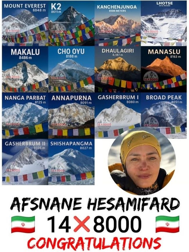 Клуб 8000 поздравляет иранскую альпинистку Афсане Хессамифард с большим достижением, завершением программы 14х8000!