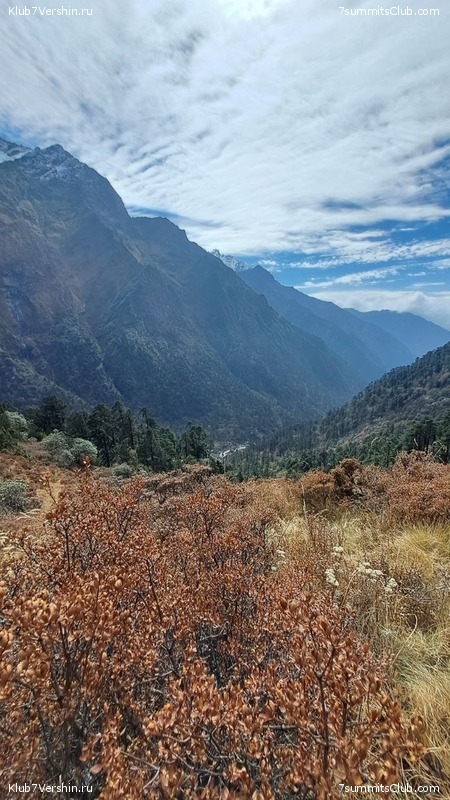Физкульт-привет из горного Непала! Наша группа 23 октября поднялась в горный лодж Chutanga 3560м. Шли мы в хорошем темпе по хорошей погоде. 24 октября у нас долгий и напряжённый день с подъёмом на перевал Zatrwa Lapas 4620м и спуском в следующий лодж Thuli Kharka 4220м. По ходу дела наша группа приобрела название - "Барсуки Гангстеры". 25 октября мы вышли в комфортабельный лодж Коте. Здесь есть всё, что нужно современному человеку: интернет, душ, кофе. Сегодня отдых, завтра выход в окрестностях лоджа на смотровую площадку. Группа в хорошем настроение, продолжаем путь к нашей цели.