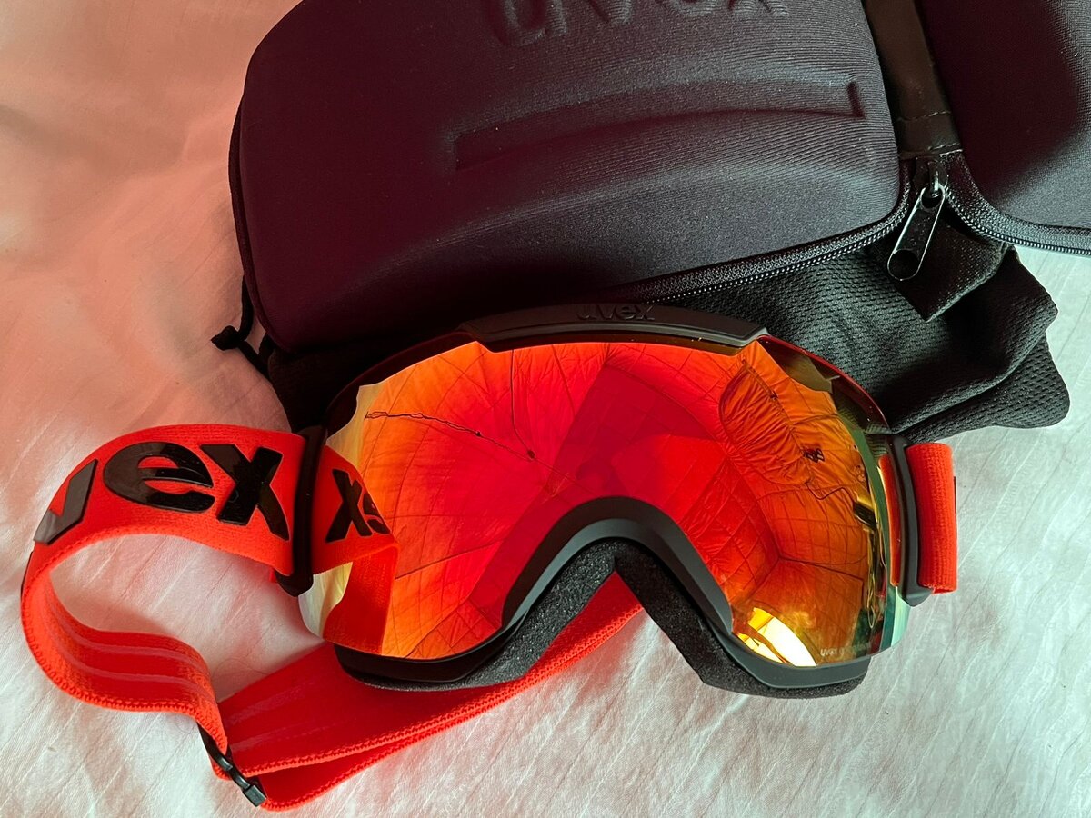 Конечно горнолыжные очки (маска) с широким боковым обзором и специфическими стеклами. Особенность - высокая поляризация. Добавляет резкости в тумане и дымке, здесь мне повезло подобрать маску UVEX. Поскольку стекла день/ночь менять не получается, по цвету предпочитаю оранжевый: добавляет света ночью и убирает солнце днем.