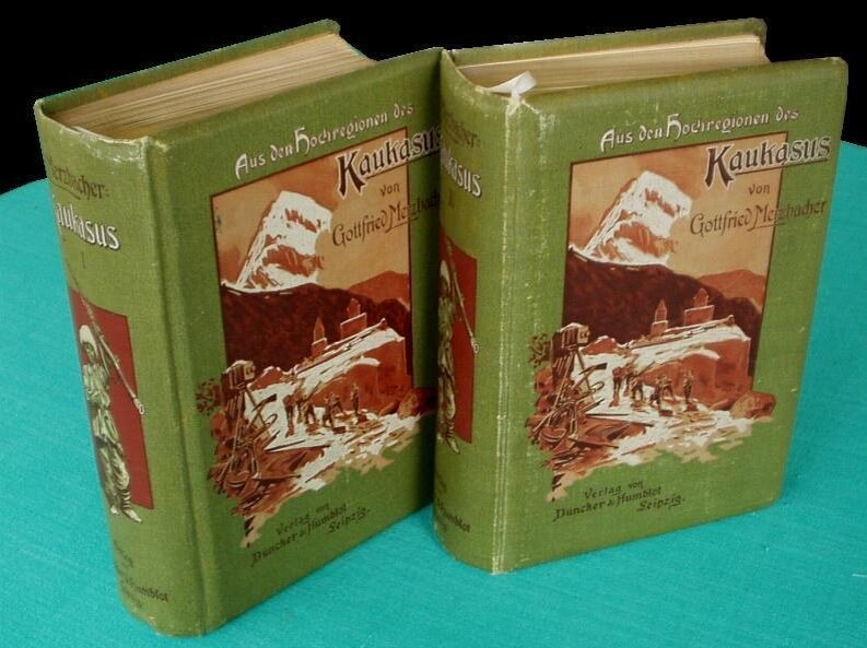 Два тома кавказских трудов Мерцбахера. Он очень старался придать научный характер текстам и фотографиям.