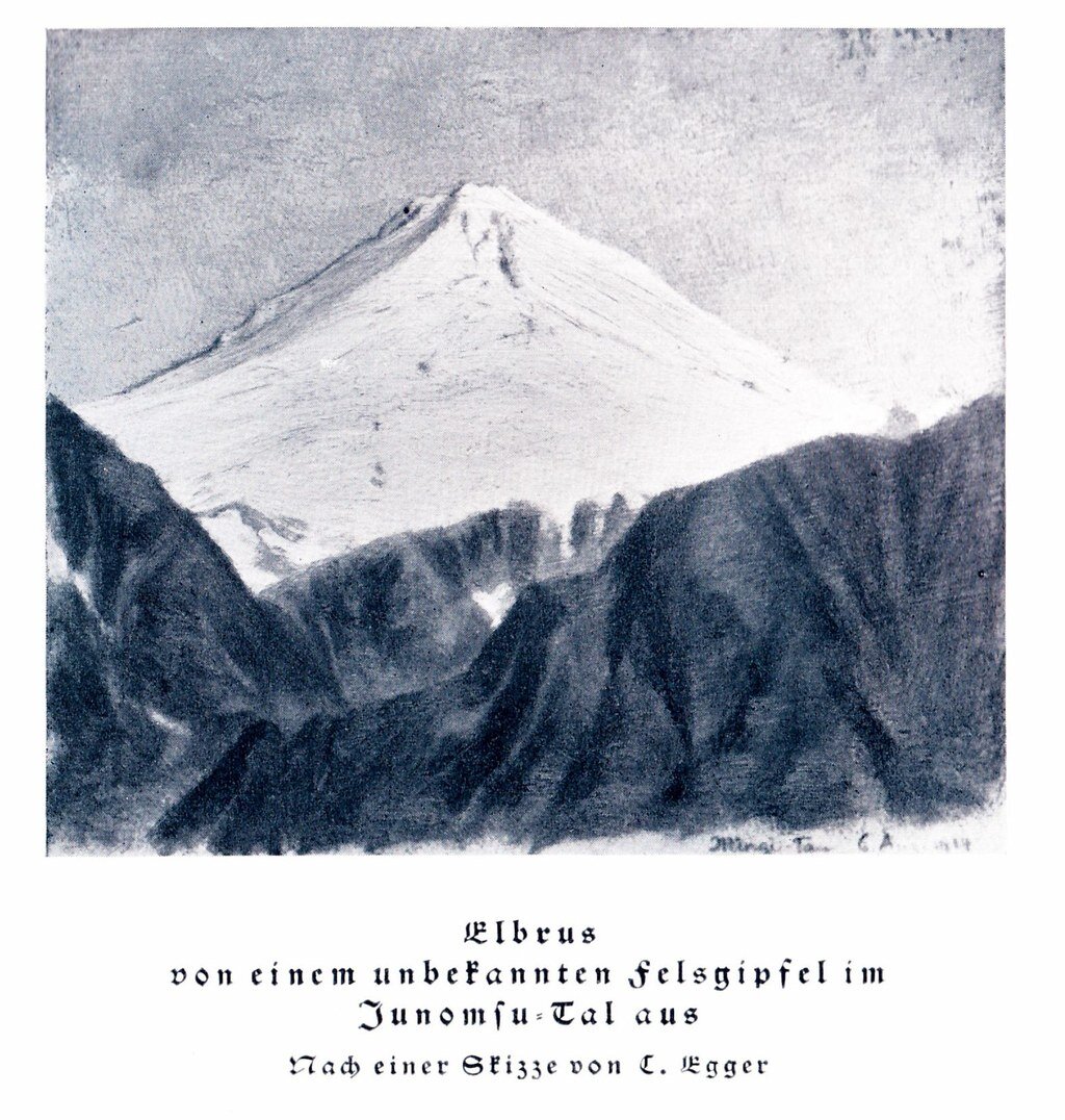 Таким изображен Эльбрус в отчетной статье Эггера в ежегоднике Швейцарского альпклуба