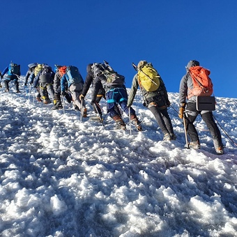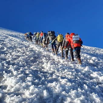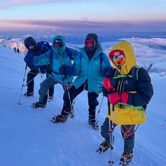 С Вами будут работать гид Клуба 7 Вершин и вспомогательный гид на период восхождения (1 доп. гид на 2 участников в ночь восхождения при группе больше 2 человек), оператор, повар на приюте.