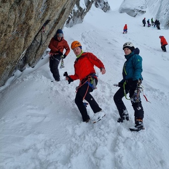 Вы научитесь двигаться по разным формам горного рельефа, взаимодействовать в команде, изучите основные узлы в альпинизме, научитесь делать точки страховки, двигаться в связках, пройдёте маршруты до 1Б до 2Б категории трудности.