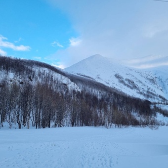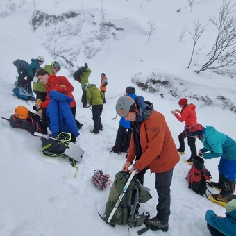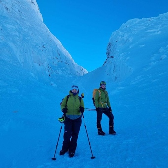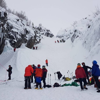 Восхождение на пик Вудьяврчорр по лавинному кулуару восточной стены (2А категории сложности, 1065 м над уровнем моря)