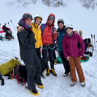 ⁃ Работа профессиональных гидов-инструкторов Федерации Альпинизма России и Клуба 7 Вершин (обладатели самой престижной награды Золотой Ледоруб России и мировой премии Piolet d'Or)